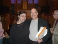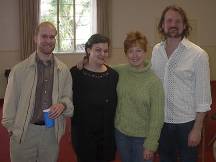 All the vocalists in attendance seemed to enjoy themselves heartily--and the gourmet lunch was delicious. Shawn Kirchner accompanied, revealing a stunning level of sightreading and artistic sensitivity to all the varied offerings of the day. Parker Emerson of Emerson Music worked hard for days to make xeroxes of all the works and put them into neat packets. Los Angeles Master Chorale member Jim Raycroft , who originated "A Choral Taste" , presided over the event with an endearing warmth and dedication, introducing each composer and encouraging the idea of commissions and performances for us all. (I second the motion!)
