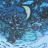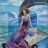 This painting has been directly inspired by a piece of music composed by Carol Worthey, An Iridescent Splash in Liquid Time for Flute, Viola and Harp, premiered by The Debussy Trio in October 2005. The melodic theme of the piece actually is painted to the right of the mermaid, as if the magical creature were stroking her shell harp and the melody were floating out into the surrounding waters. Iridescent touches of silver, copper and gold on the mermaid's tail and hair were actually painted live on stage while Carol was being video'd. This daring new performance art (painters have often painted while music played, but never live before an audience to their own created music) was world-premiered by Carol on January 11th, 2006 at the Off The Cuff show put on by Renaissance Speakers Toastmasters Club at Celebrity Centre International's Garden Pavilion in Hollywood.